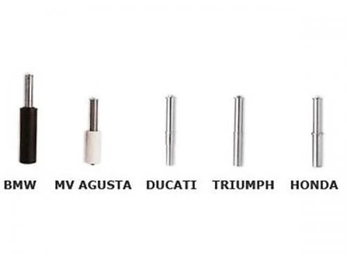 Adapters voor de Bikelift Paddockstand RS-16 Enkele Achterbrug links en rechts. De pin adapters dienen geplaatst te worden op de paddockstand, daarna pas de paddockstand in de achter as van de motor. Meet de binnenzijde van de as op met bijvoorbeeld een schuifmaat voor de juiste maat. Houd de volgende formaten (en indicatieve motoren) aan bij kiezen van de afmeting: