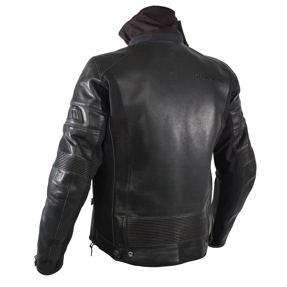 Het exterieur van dit motorjack is gemaakt van ademend , wind- en waterdicht 3-laags volledig geperforeerd anilineleer Corium+® Platinum laminaat shell stof. Voor nog meer comfort vind je aan de binnenkant ook nog een 80g verwijderbare thermovoering naast een verwijderbare kraag van Goretex en ventilatieopeningen op de zij. Naast bescherming bij een val- of glijpartij ben je dus ook goed beschermd tegen het klimaat.